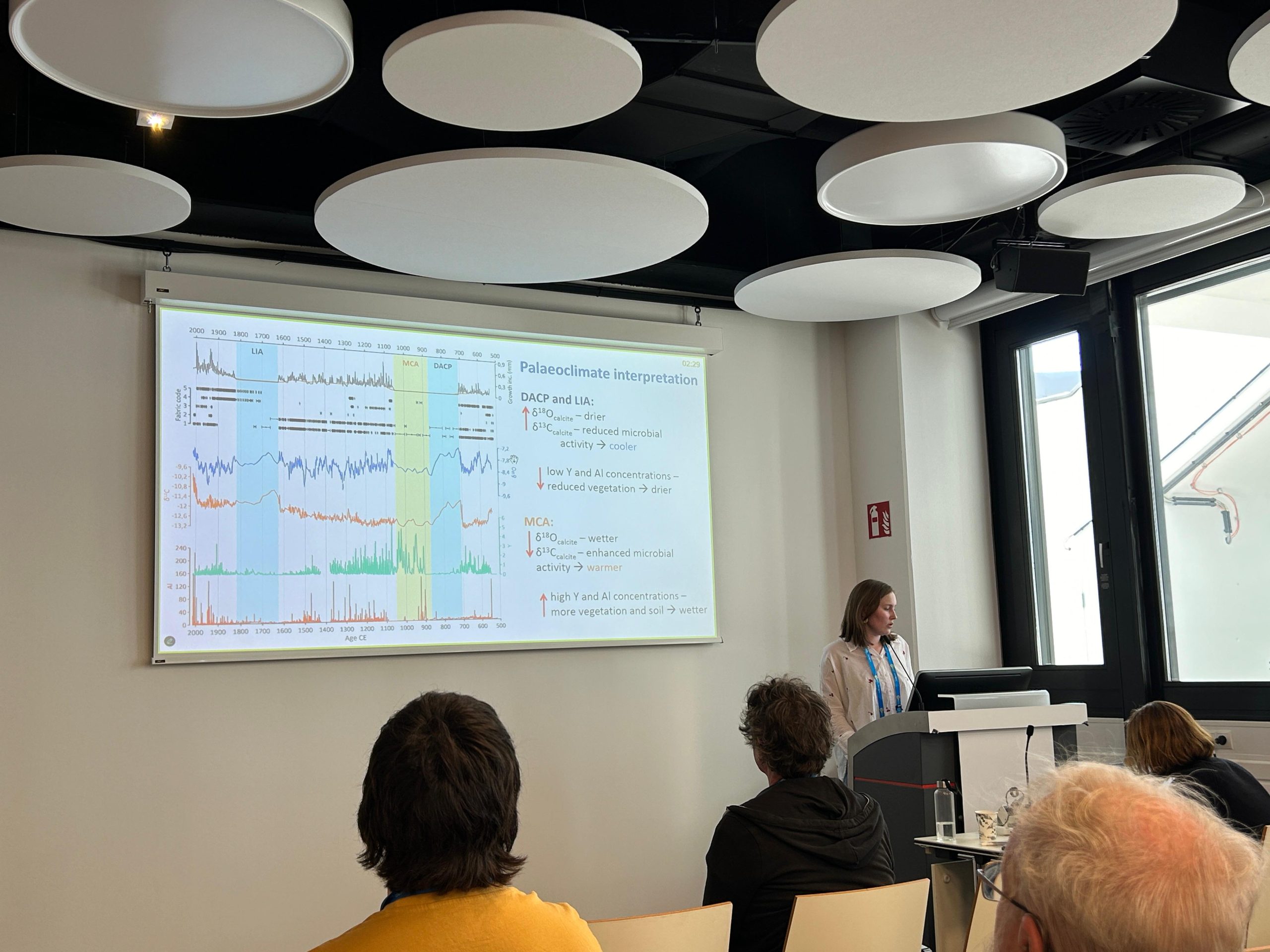 As part of the program, Petra delivered an invited lecture entitled: „Climate in the Geological Past: what was it like and how do we know it?“. In her talk, she emphasized the significance of understanding natural climate variability throughout the geological past as a foundation for comperhending future climate change. Continuing on this topic, Iva held a lecture with the title: „Reconstructing Late Holocene climate using stable isotope records of a stalagmite from Nova Grgosova Cave (central Croatia)“.